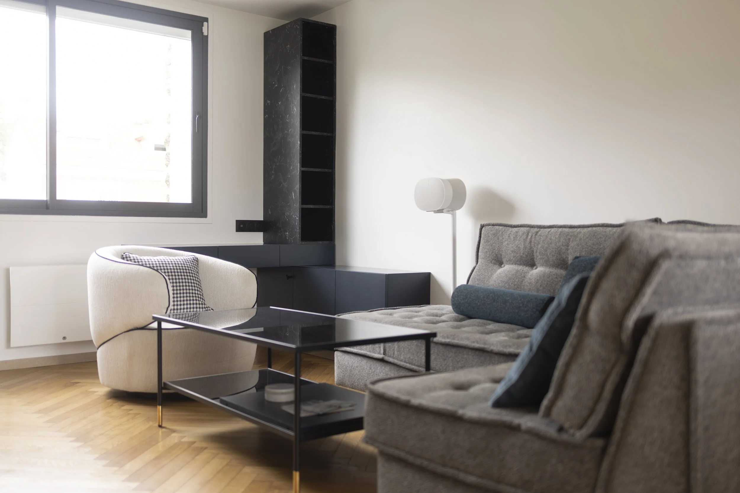 Située dans le Val de Marne, cette maison de quatre étages a subie une rénovation complète pour créer un espace familial et accueillant.